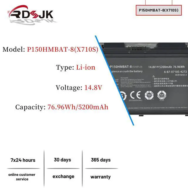 Part Numbers: 6-87-X710S-4271, 6-87-X710S-4272, 6-87-X710S-4273, 6-87-X710S-4J7, 6-87-X710S-4J72, P150HMBAT-8Note: This battery only applies to X710S P170HM P170EM, not compatible with X510S.