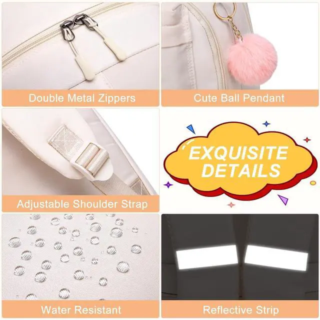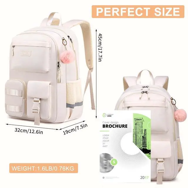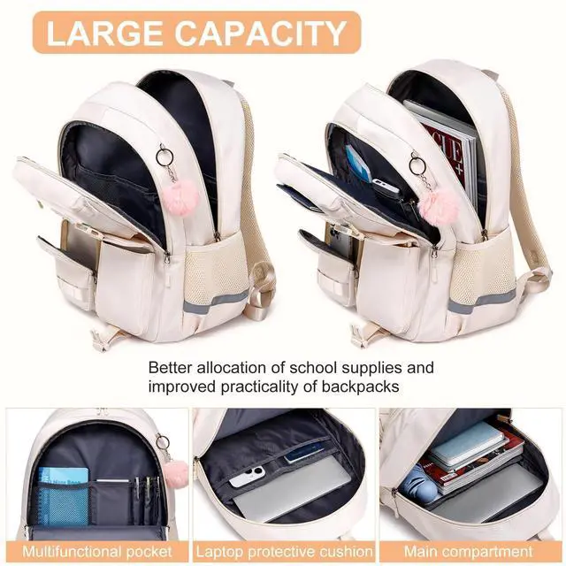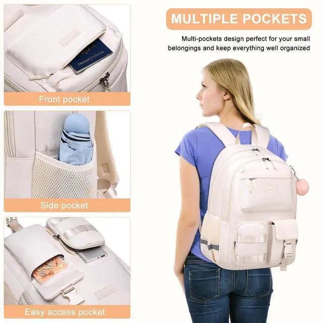 Reinforced stitching ensure long-lasting use through busy semesters. SMART ORGANIZATION = STRESS-FREE CARRYStay organized with multiple pockets: Dedicated padded laptop sleeve (fits 15.6 screens)Front zip compartment for phones/wallets/keysSide mesh pockets for umbrellas & tumblersInternal slots for pens, power banks, & IDsFASHION MEETS FUNCTIONClassic casual daypack style in versatile colors beige complements any outfitfrom campus lectures to coffee-shop study groups. Lightweight ( 0.44 kg) yet sturdy, it transitions seamlessly as a school bookbag, travel rucksack, or work backpack. PERFECT GIFT FOR STUDENTS Ideal for teens, college freshmen, and young professionals! Backed by a 180-day satisfaction guarantee. upgrade your carry with confidence!