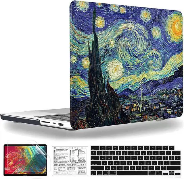 QCzyc Compatible with MacBook Pro 14 Inch Case 2021-2025 M5 M4 M3 M2 M1 A3434 A3185 A3112 A3401 A2992 A2918 A2779 A2442 Plastic Shell &Keyboard Cover& Mac OS Keyboard Sticker (Van Gogh Starry Sky)
