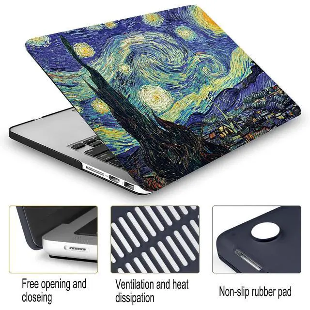 ^^ Stylish Design: Trendsetting designs with high quality printing with everlasting colors - perfect for adding some extra flair to your Macbook. The vent slots at the bottom of the case can easily keep your Laptop cool. The four rubber feet can safely keep your device stable. ^^ Including 1 matching keyboard cover, 1 screen protector and 1 Mac OS keyboard shortcuts clear vinyl sticker.