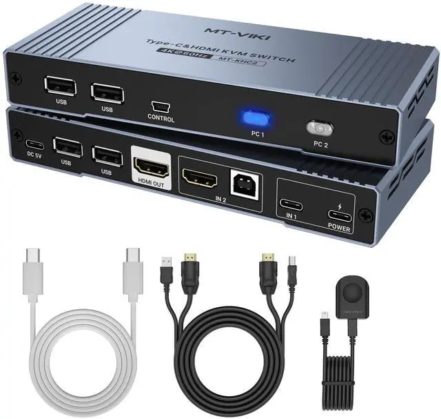 ^^ Package: Includes 1x KVM switch, 1x USB A to B cable, 1x HDMI cable, 2x USB C cables(5ft/ 1.5 meter).