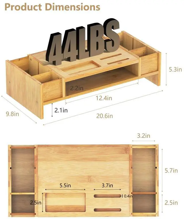 FLEXIBLE STORAGE COMPARTMENTS: This bamboo monitor stand features adjustable side dividers, allowing you to customize the storage compartments to meet your different needs ^^