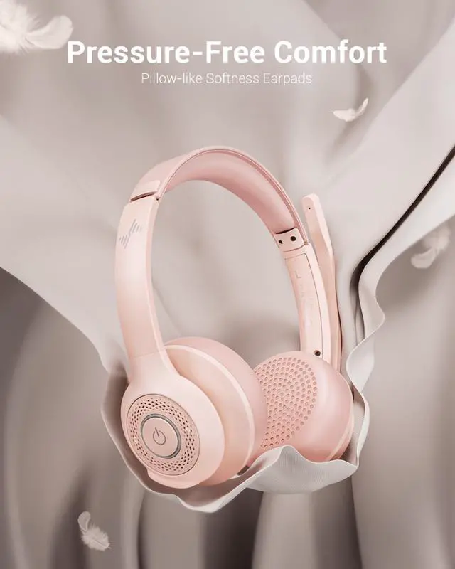 JIAMQISHI Wireless Headset with AI Noise Cancelling Microphone Bluetooth Headset - Bluetooth V5.2 Headphones with USB Dongle & Mic Mute for Computer/Laptop/PC/iPhone/Android/Cell Phones (Pink)
