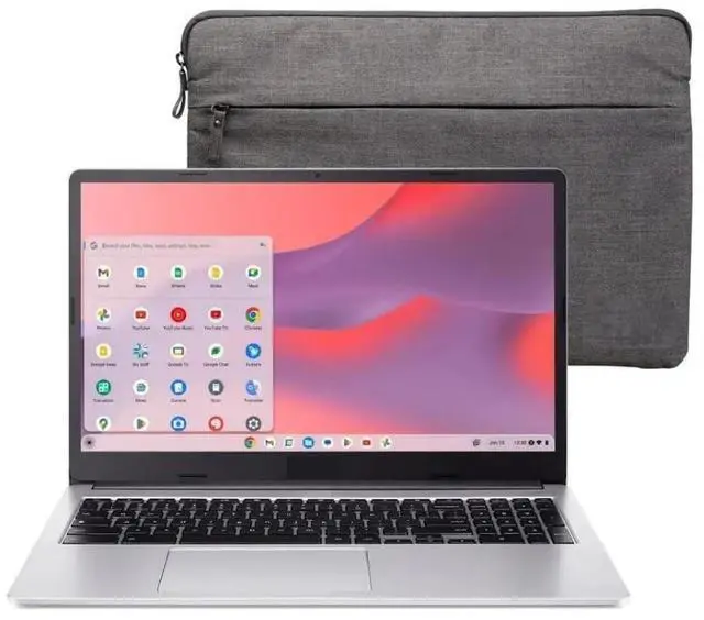 New Chromebook Laptop 15.6 inch HD Pentiu. m N6000 Processor 4GB RAM LPDDR4X 128GB eMMC DTS Audio Webcam WiFi USB-C up to 10 Hours Long Battery Life Chrom. e OS with Protective Sleeve