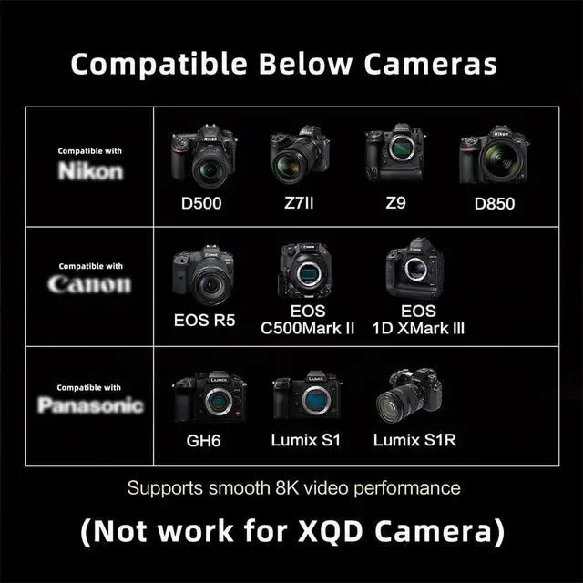 Interface: NVMe PCIe Gen3x2, Form Factor CFexpress Type B. Read write speeds of up to 200-800MB/s, offer low latency during high-speed recording and enhance workflow, Performance may be lower depending upon host device, usage conditions, and other factors. Designed for next-gen video/photo cameras such as DSLR, cinema, and mirrorless cameras, Enables smooth, RAW 4K/8K video support. Captures flawless RAW videos and photos in breathtaking 8K Ultra HD resolution. CFexpress type b card is shockproof, anti-magnetic, moisture proof, X-ray proof, cold and heat resistant, tough and durable, resistant to bending, and able to withstand extreme environments.