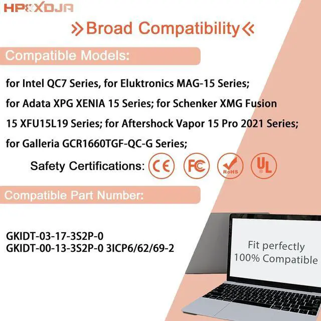 COMPATIBLE WITH: GKIDT-03-17-3S2P-0 battery. for Intel QC7 Series. for Eluktronics MAG-15 Series. for Adata XPG XENIA 15 Series. for Schenker XMG Fusion 15 XFU15L19 Series. for Aftershock Vapor 15 Pro 2021 Series. for Galleria GCR1660TGF-QC-G Series. for Galleria GCR2070RGF-QC-G Series; for Galleria GCR2070RGF-QC-B Series ^^