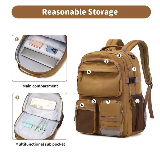 [Durable & Lightweight] - The big backpack is made of water resistant 900D polyester fabric, it is durable and lightweigt, and the weight is only 1.56 lb. ^^ [Large Capacity] -