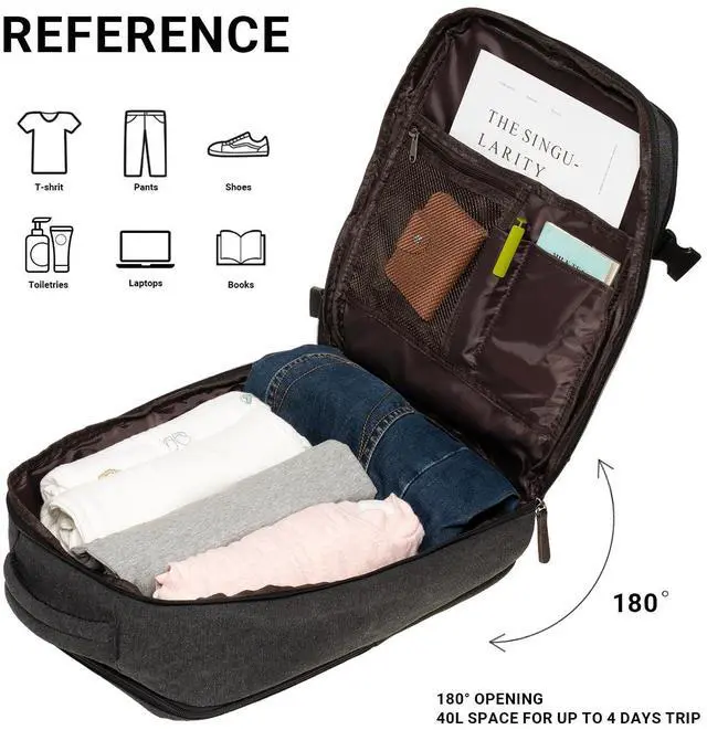 Capacity for Travel: With a capacity of 40L and dimensions of 11.8"D * 5.51"W * 16.53H, this backpack is perfect for travel. It meets the requirements for carry-on luggage and can be opened 180 degrees like a suitcase, allowing you to quickly pass through airport security. It's a must-have fashion item for business trips and travel, and can comfortably fit a 15.6 inch laptop. ^^