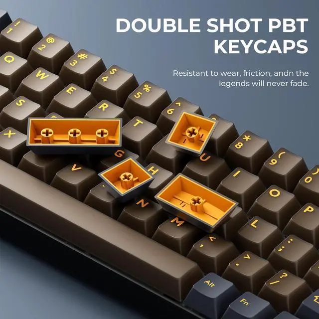 Premiun Doubleshot PBT Keycapsthe custom keycaps is well built by PBT material and doubleshot process, extending their service life, resistant to oiling, scratching, and other forms of wear and tear; Because of the double-layer injection molding process, this legend is very clear and will never fall off ^^ Slightly Transparent Jade Feeling Keycap SetThe delicate jade feeling combined with the frosted PBT keycap creates a charming