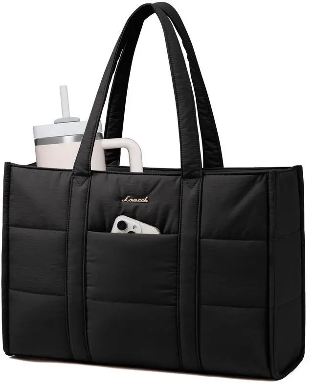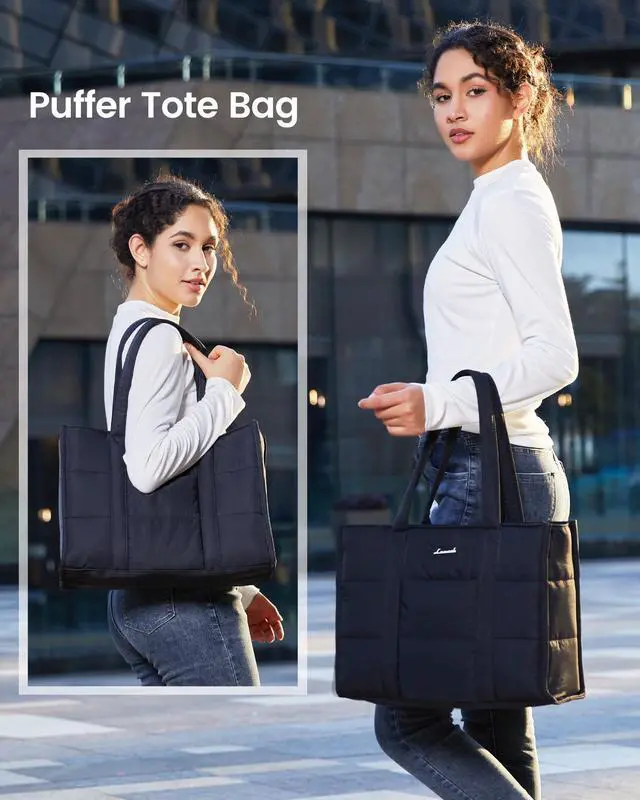 The cute tote bag's wide opening ensures you can quickly pick up your belongings ^^ Suitable Size for Everyday LifeMeasuring 15.8" L x 5.7" W x 11.8" H, this puffy laptop tote holds your daily essentials, including 15.6" laptop, 12.9" iPad, makeup, phone, glasses, charger, tissues, water bottle ^^ As a Thoughtful GiftThe women's tote bag is versatile, fitting various occasions and pairing well with different styles of outfits. It is a wonderful gift option for family and friends, and a lovely choice for women.