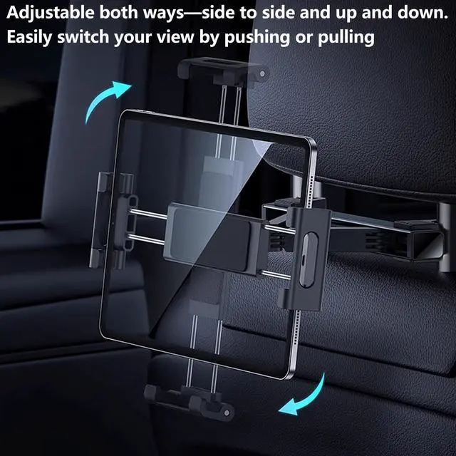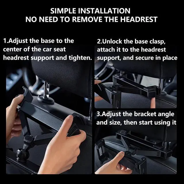 Versatile design options - retractable or fixed, easy one-handed operation, inspired by eagle claws for a secure grip on bumpy roads. Adjust angles effortlessly with a 360 ball head for horizontal and vertical flexibility. Strong compatibility, fits most car models with headrest post spacing between approximately 1.85" - 6.38", accommodating devices sized 4.7" - 12.9". Please note that hand measurements may result in a 1-2cm deviation
