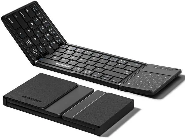 Bluetooth Folding Keyboard: The office keyboard adopts a three-fold folding design, which is small and ultra thin. The bluetooth mini keyboard comes with a PU cover to protect your small keyboard wireless from daily wear and scratches. The wireless keyboard with number pad comes with a durable and waterproof storage bag and a mobile phone holder, which can be easily put into your pocket or backpack. The compact design and slim structure are suitable for you to use in the office, auto, and when travel.