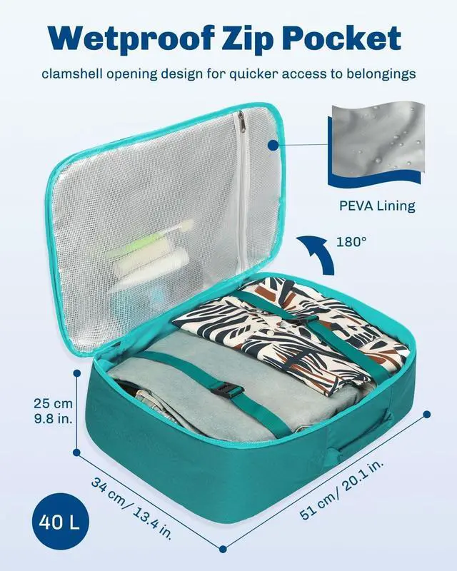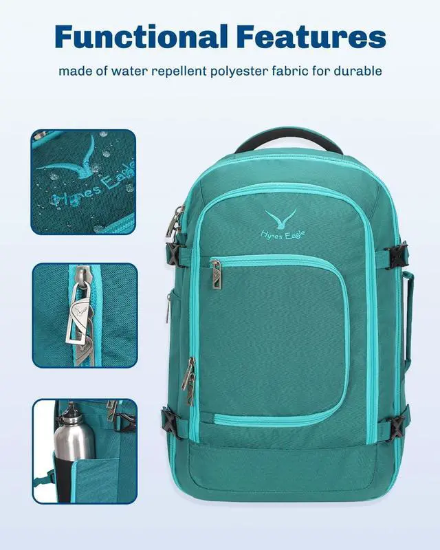 Flight Approved Sizemade of water repellent polyester and 210D polyester lining, the carry on bag fits the allowed maximum size of most IATA flights and can also fit in the overhead compartment, 40L carry on backpack Approx.