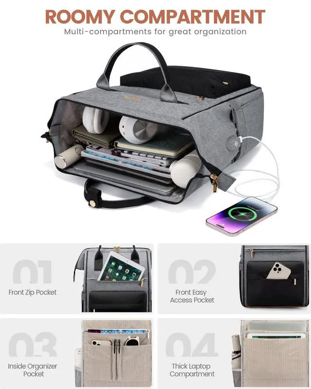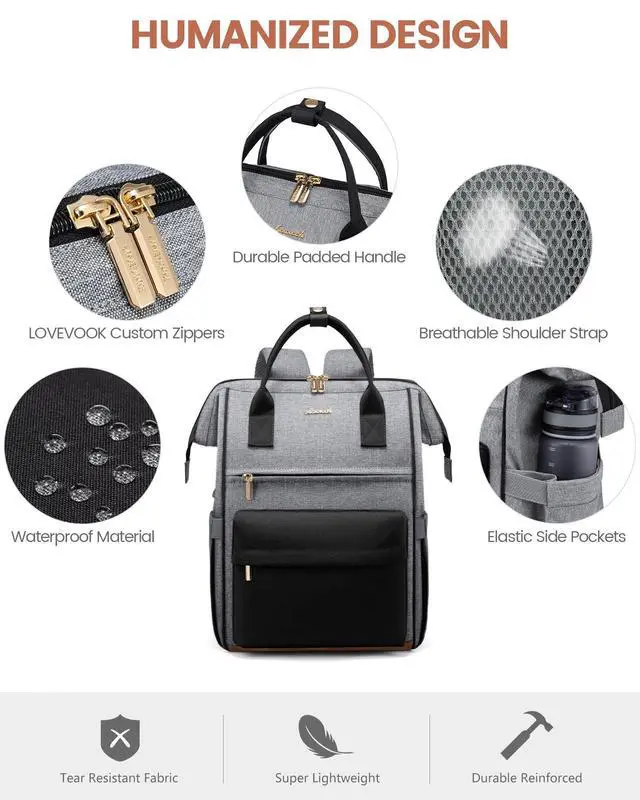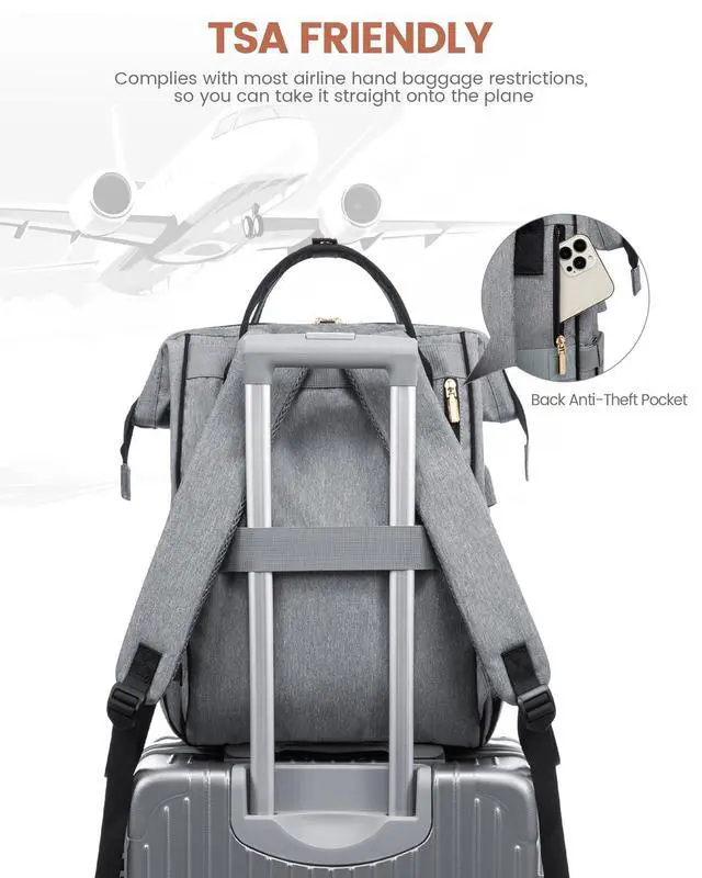 The convenient luggage strap allows you to effortlessly attach the backpack to your suitcase. The anti theft pocket on the back keeps your valuables secure, and the hidden handle provides an alternative carrying option. ^^ [Versatile Use & Ideal Gift Option]Suitable for both men and women, this laptop backpack is an extremely practical multi purpose bag. Well-made womens laptop backpack is perfect for work, school, travel, daily and family vacations. As a practical and stylish gift, it's a great choice for family, colleagues, or loved ones. Lovevook backpack can always bring you the most comfortable experience.