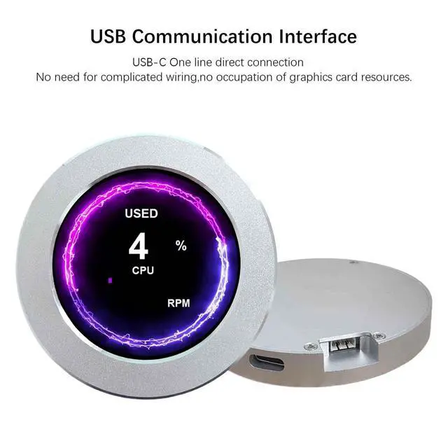 Packing List: 1 2.1 inch 480x480 Round LCD Monitor (Silver), 1x 4PIN USB-C cable