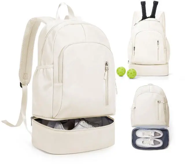 SEAFEW Small Gym Backpack for Women Men, Waterproof Gym Track Bag with Expandable Shoe Compartment, Lightweight Mini Casual Daypack Sports Back Pack for Travel Hiking Dance Yoga Fitness Track, White