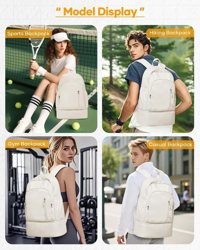 Large Capacity Multi Pocket Design: This gym backpack has a spacious main compartment that can accommodate 3-5 thin tops or pants, and 3 mesh pockets that can be used to store iPads, wallets, or power banks. The internal zipper pocket can be used to store ID cards and credit cards. There are also two side pockets that can store water bottles and umbrellas. It is lightweight and fashionable, very suitable for exercise and sports.