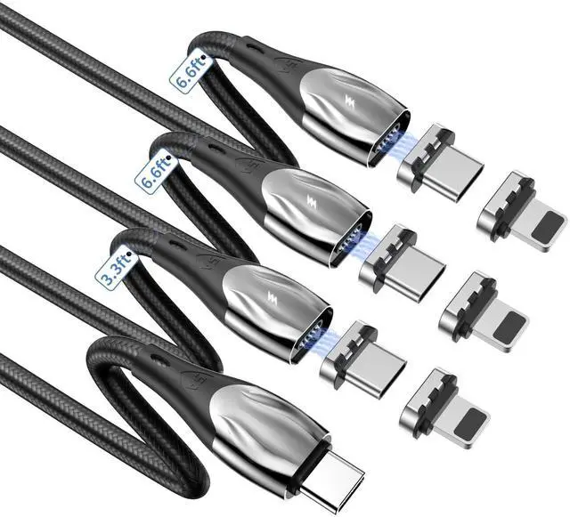Smart Chip]: The magnetic charging cable is made of premium nylon braid, which adds extra durability and kink-free, no need to worry about this magnetic USB C cable quality. ^^ [What You Get] 3 x 100W Magnetic Charging Cables( 3.3 / 6.6 / 6.6 ft), 6 x Magnetic Tips. 30 days free money back and 12-months warranty. If you have any questions about the product and service, please feel free to contact us. We will reply and solve the problem within 24 hours.