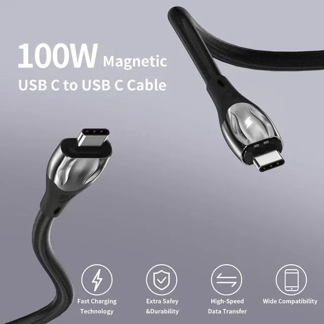 [100W PD Fast Charge] This USB C Magnetic cable use USB PDUSB-Power Delivery fast charging technology. All USB C devices can be safely charged at the maximum rate without short circuit and over current charging.