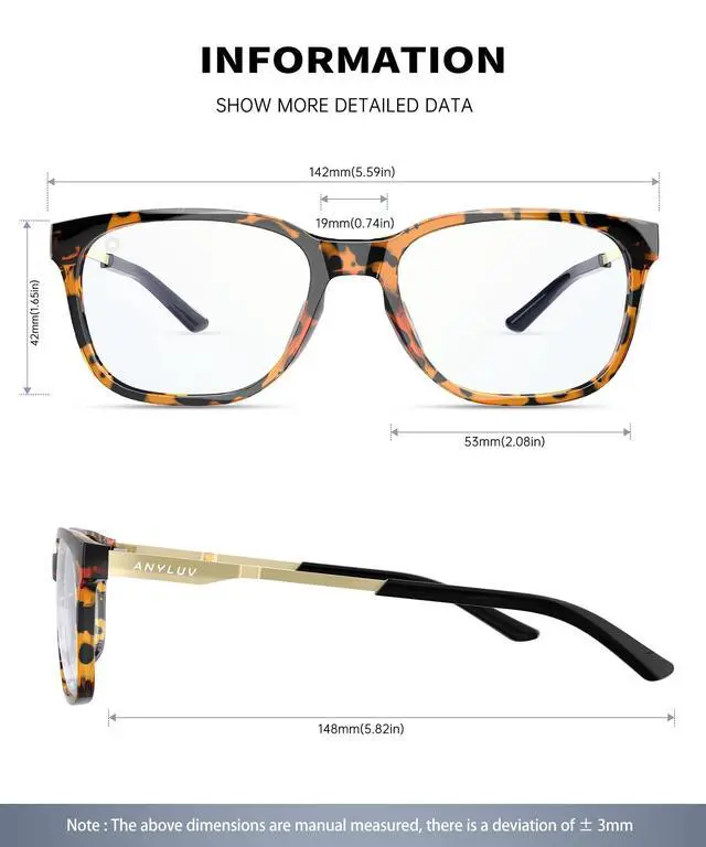 • EYE PROTECTION: With the increasing use of digital devices, protecting your eyes from high-energy blue light is crucial. ANYLUV blue light blocking glasses offer a reliable solution to reduce the risk of discomfort and long-term sight conditions, ensuring your eyes stay healthy and refreshed.