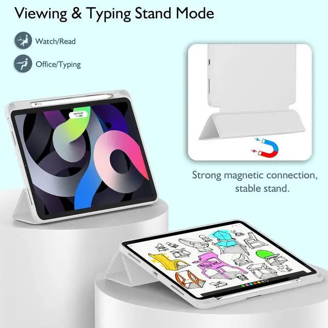 Generation 2022 (model number: A2589 A2591 A2588) / iPad Air 4th Generation 2020 (A2316 A2324 A2325 A2072). Not compatible with any other devices. Please check the back bottom of your iPad to find the model number. ^^ Compatible for Apple Pencil Pro & 2nd Gen & Apple Pencil (USB-C), Support charging and attachment feature. ^^ [Full Protection] Made of PU exterior, microfiber lining and Soft TPU back cover. Provide full body protection against shocks, drops and scratches. ^^ [Support Touch ID and Auto Sleep/Wake Feature] Magnetic smart cover supports auto wake /sleep function. Powerful magnet secures the case closure, easy to snap on and off. ^^ [Different Viewing Angles] Designed with dual standing positions for users to adjust the iPad into different angles.