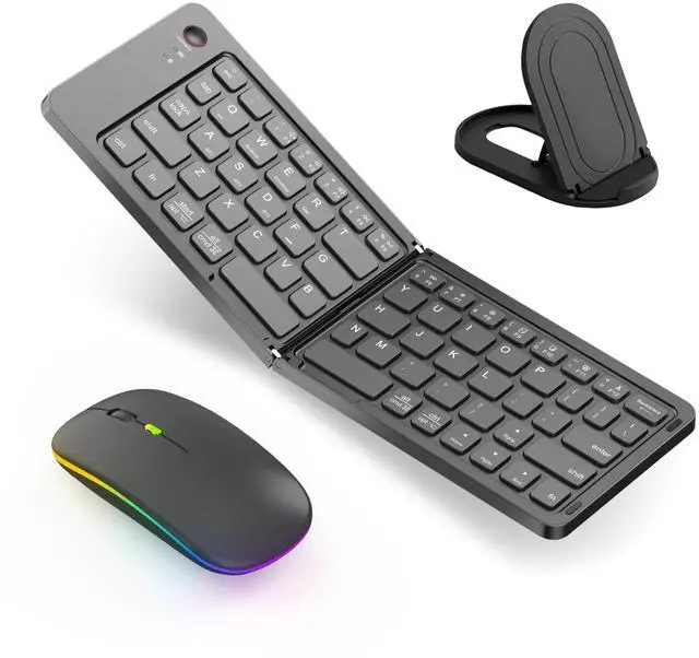Mouse for Travel: Unlock Productivity, Unleash Convenience! Embrace the freedom of wireless typing with our foldable keyboard and mouse set. With Bluetooth connectivity, this portable set eliminates the need for tangled wires, providing a hassle-free typing experience. Perfect for travel and on-the-go use, enjoy the ultimate in portability and convenience with our wireless solution. ^^