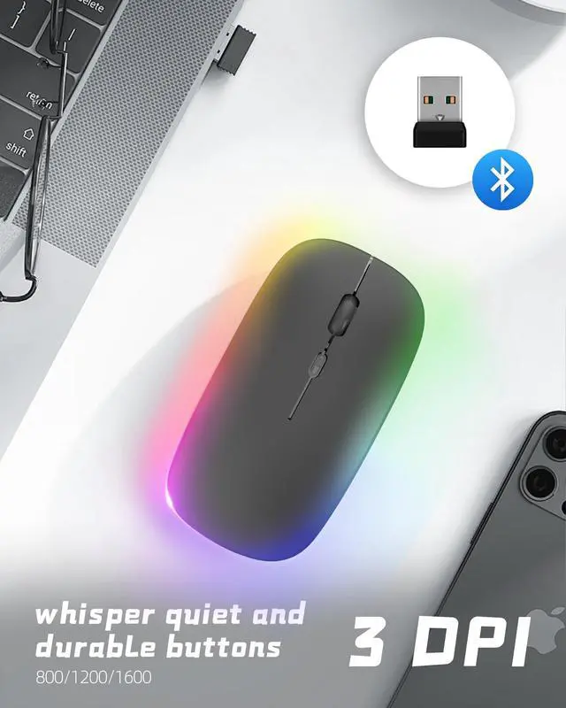 Mouse Combo: The portable keyboard and mouse combo includes a ergonomics keyboard and a high sensitivity mouse. Wireless Mouse DPI 1600 in 3 levels- You can easily change the cursor sensitivity of this cordless mouse depending on your activities. with free phone holder allows you to work anywhere, anytime! Standard-size design provides accurate, fast typing, just like the desktop keyboard you are used to. Quiet keys allow you to focus on your work. Perfect for travel, business trips and daily use. ^^ Rechargeable and