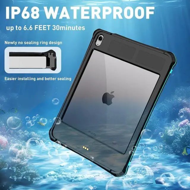 Air 10.9": A2316, A2324, A2325, A2072, A2588, A2589, A2591; not compatible with any other iPad models. ^^ IP68 waterproof rating & drop-proof, waterproof up to 6 feet, 2.6 feet Drop-proof. perfect for water activities and work. Such as swimming, kayaking, beach parties and boating. Drop-proof four-corner design can effectively prevent your beloved iPad air 6th/5th/4th from being damaged by falling. ^^