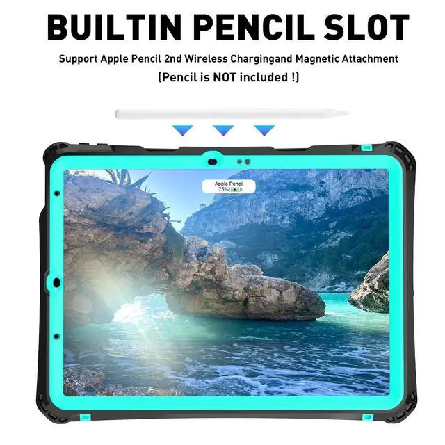 Support for iPad accessories: Compatible with Apple smart keyboard can be used directly without turning off iPad air 6th/5th/4th. (Smart keyboard not included) But other brands of keyboards are not work. And Compatible Apple pen, The built in screen protector does not affect the sensitivity of the pen at all, built in pen holder with wireless charging (Pen not included).