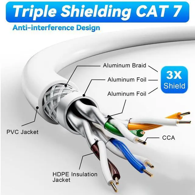 ^^ Triple Shielded SFTP: This Cat 7 network cable is consisted of 4 pairs of shielded twisted pair cables, each shielded twisted pair cables are individually wrapped in an aluminum foil shield, while the entire bundle is shielded by a large aluminum braid, and then wrapped with an aluminum braid shield on the outside. The triple shielding means that MEIPEK cat7 cable has superior shielding features than typical cat7 Ethernet cables, and is truly the highest level of shielding available, reducing EMI/RFI interference and providing the highest level of fidelity for long distance data transmission. ^^ Decide Your Own Lengths & Free
