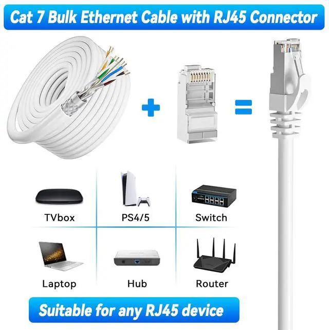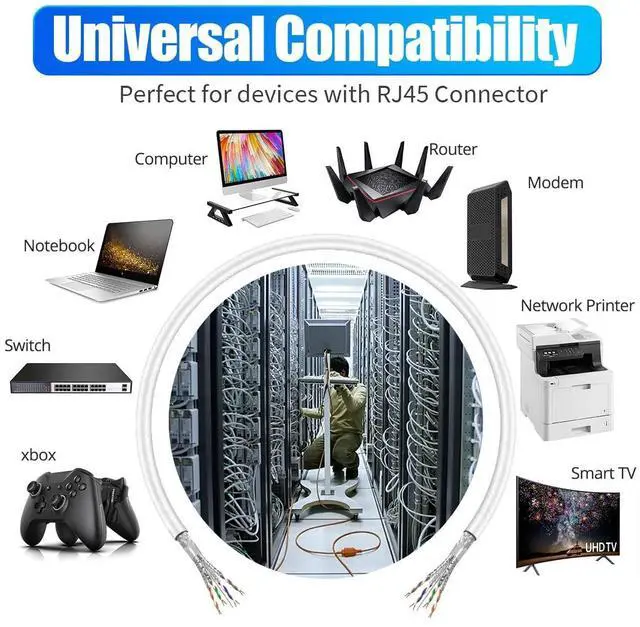 RJ45 connector devices: iMac, PS4, PS5, router, modem, video game consoles, Network printers, media players, TV box, laptop, etc. Backward compatible with Cat5e, Cat5, Cat6, Bring you the fast Internet experience.