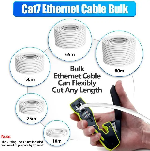 RJ45 Connectors: This Cat 7 ethernet cable bulk are not limited by fixed length and can be cut into any length according to different scene requirements. You have the flexibility to cut the length you want without being limited to the length options offered by the market. In addition, we will provide you with some RJ45 connectors for free, so you don't have to purchase additional connectors yourself, which avoids the trouble of buying mismatched connectors and is very cost-effective. ^^ Heavy Duty for Outdoor Use & Direct Burial Rated: Soibke cat7 Ethernet cable uses 24AWG CCA wire, which is thicker than other 26AWG for faster and more stable data transfer. The cable body is made of upgraded PVC material, which is waterproof and abrasion-resistant, as well as more durable and flexible. It can be buried directly into the ground without conduit and other auxiliary equipment, ideal for outdoor work.