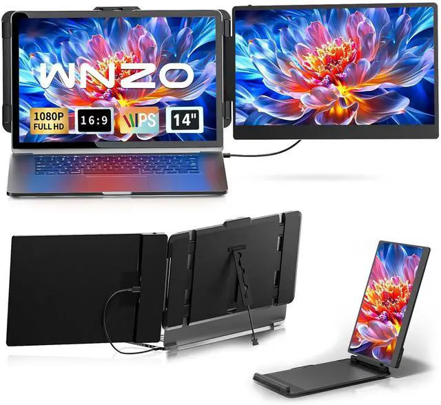 If you face device compatibility or connection issues, contact usour professional support team will help resolve them quickly. ^^ [14" FHD laptop extender] WNZO portable monitor for laptop features a 14-inch IPS panel for smooth visuals, complemented by 1920x1080 resolution, 1000:1 contrast ratio, and 300 nits brightnessensuring vivid color reproduction for editing, video calls, or movies. The monitor supports a maximum 180 opening angle, while a 90 adjustable rear stand enables flexible viewing angle adjustment to reduce neck strain during extended work sessions. Making it an ideal choice for work and entertainment.