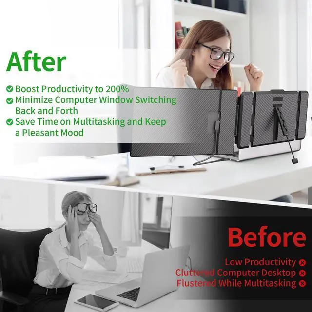 For devices without it, use a USB-A cable and an HDMI cable (2 cables) for quick setup. It cuts lengthy setup steps, so busy pros can jump straight into multitaskingat home, office, or on the go. ^^ [Wide Compatibility] This WNZO laptop monitor extender has a dual safety design (security latch + top hook) to secure it firmly to 13.3 -17 inch laptops, preventing slipping. It works with Windows, Mac, Android, Linux, Dex, Chrome OS, plus devices like Laptop, PC, Switch, XBOX.
