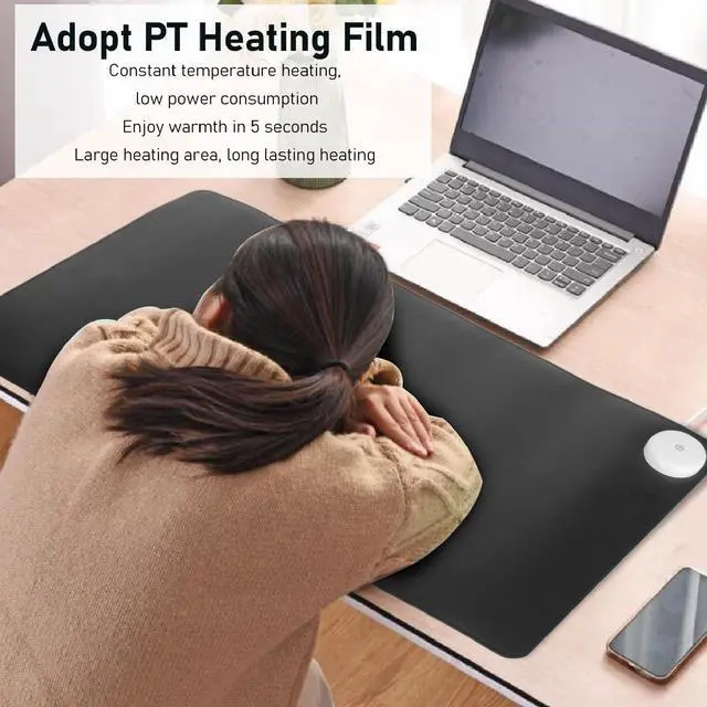 1. [Constant Temperature] Warm desktop pad adopts PT heating film, constant temperature heating, low power consumption. 5 seconds to enjoy the warmth, large heating area, long lasting heating. 2. [Timer Setting] Warm table pad with built in smart chip, can be set to automatically shut down after 1, 2, 4 hours, the system defaults to shut down after 4 hours, to prevent excess power consumption, and safer. 3. [Wear And Folding Resistant] This heating mouse pad adopts printing process, with friction resistant, folding resistant performance, not easy to lose color, not easy to delamination.