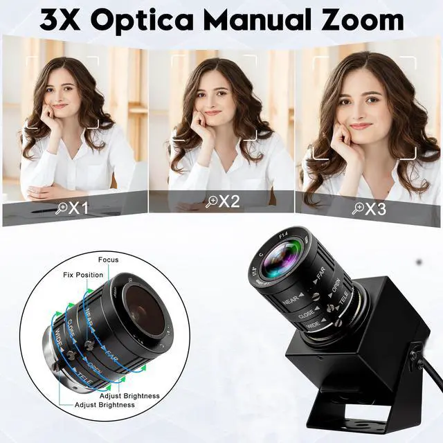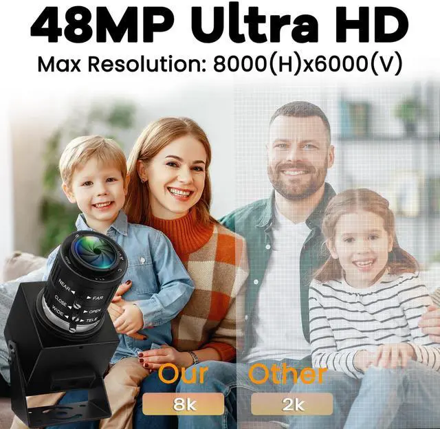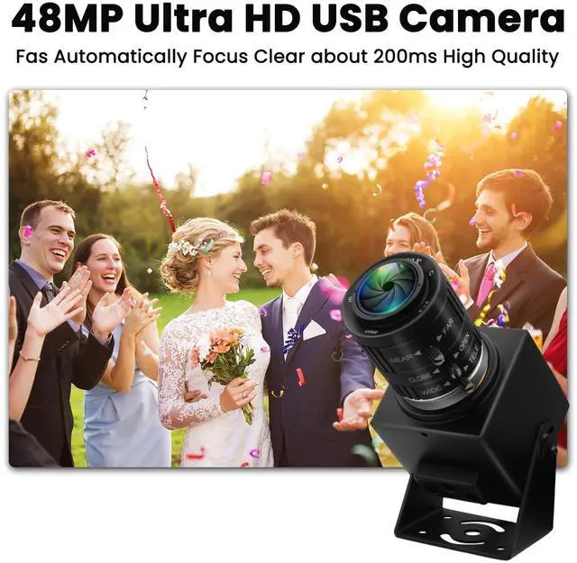 The 48MP USB Camera features a high quality 1/2-inch IMX586 sensor image sensor and a high resolution 48MP USB webcam with 8K Ultra HD 8000 (H) X6000 (V) @3fps. ^^ 8K USB Camera with 3.6 -10mm adjustable focal length lens with manual focus ring and aperture ring to help you get a clear image at different focus distances. ^^ USB Camera with manual zoom and variable focus for all kinds of distance shooting. Zoom, brightness and clarity can be adjusted by rotating the lens. The longest available focal length is 10mm, so you can also photograph subjects further away.