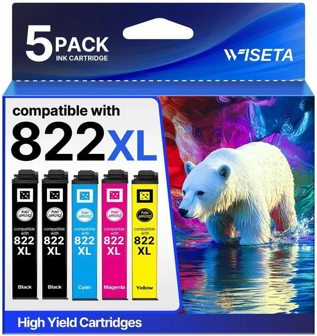 Package includes: We offer high-yield 822xl ink cartridge set that works seamlessly with epson 822 ink cartridges, featuring a practical combination of 2 black, 1 cyan, 1 magenta and 1 yellow cartridges ^^