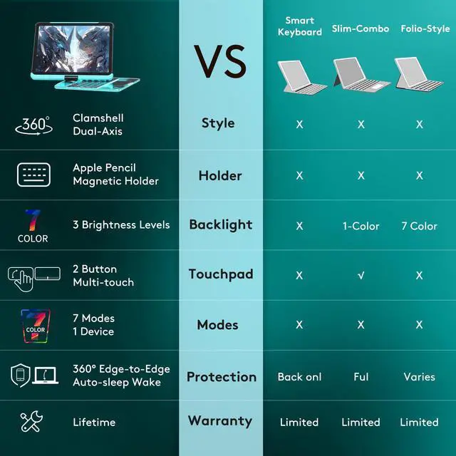 Precision Trackpad: Boost your iPad's functionality with a built-in wireless keyboard and precision touchpad for easy navigation and editing. Perfect for professionals, students, and creatives who need laptop-like control on the go.