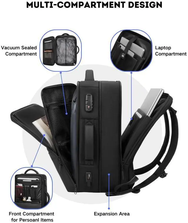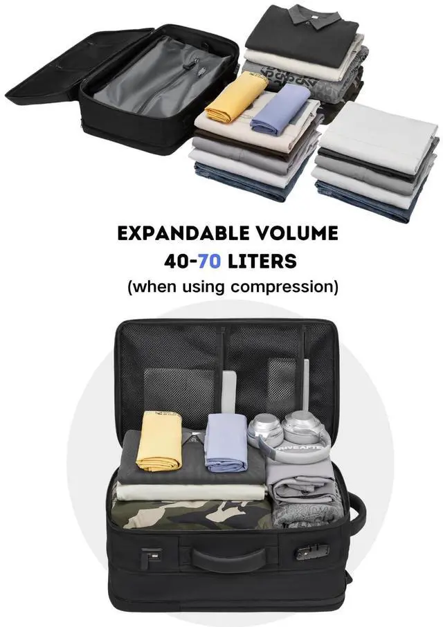 ^^ Expandable Storage: Maximize packing space with an expandable design that holds all your essentials, including a laptop, clothes, and accessories. ^^ Multifunctional for