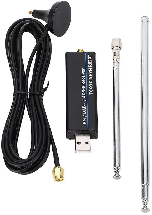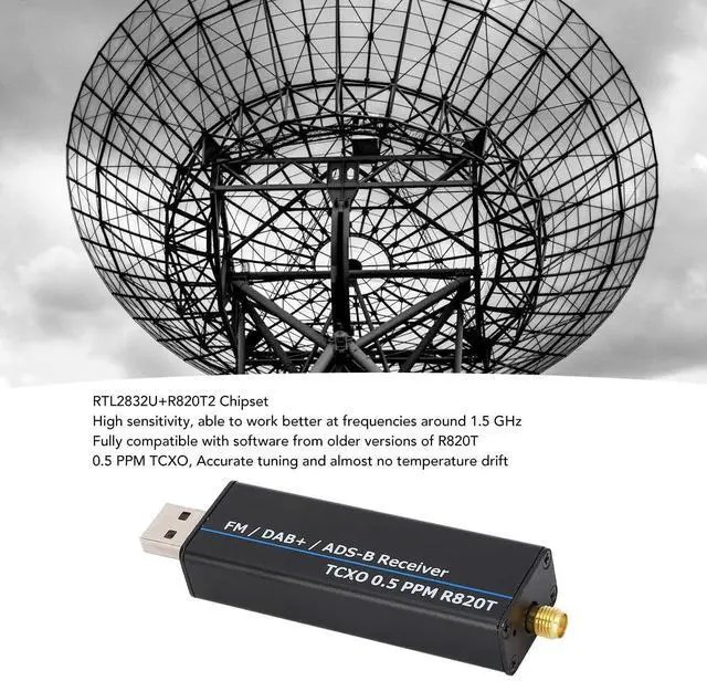 (Added features: CTCSS, DCS, frequency scanner, automatic scanning, etc. ) ^^ [ 0.5 PPM TCXO] Features tuning and minimal temperature drift, covering all HF amateur bands, VHF, and UHF frequencies from 24 to 1766MHz, with up to 3.2M sampling rate (~ 2.8MH z stable). Receiver modes include, NFM, FM, DSB, USB, LSB, and CW. ^^ [RTL2832U and R820T2 Chipset] Utilizes RTL2832U and R820T2 chipset for improved sensitivity compared to R820T, with better performance around 1.5 GHz. Fully compatible with old R820T software. Operating frequency 100KHz to 1766MHz, covering all amateur bands. ^^ [Direct Sampling] Supports shortwave Q branch direct sampling (depending on SDR software used), with 8 bit ADC providing approximately 50 dB dynamic range, 50 ohm input impedance, and independent antenna inputs for shortwave and VHF. ^^ [USB Computer Connection] Mini USB powered, receives low, medium, high frequencies (0 to 30MHz). HF band antenna must be connected to input port, while reception requires compatible antennas like long wire, random wire, dipole, etc., for optimal performance.