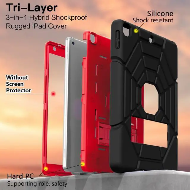 Shockproof Rugged Design: 9.7 Case made of durable Hard PC+Silicone, 3-layer Full Body protection structure, provide a perfect protection, protects your pad 6th/5th Generation 9.7" 2018/2017 from scratches and accidental drops, bumps, and impacts ^^