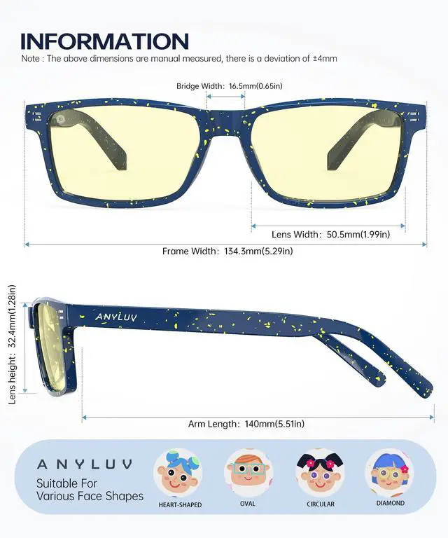 Brand Service: ANYLUV attach great importance to product quality and customer satisfaction. Each customer can enjoy after-sale brand service for our kid blue light glasses. Please feel free to contact our customer service if you have any product problem