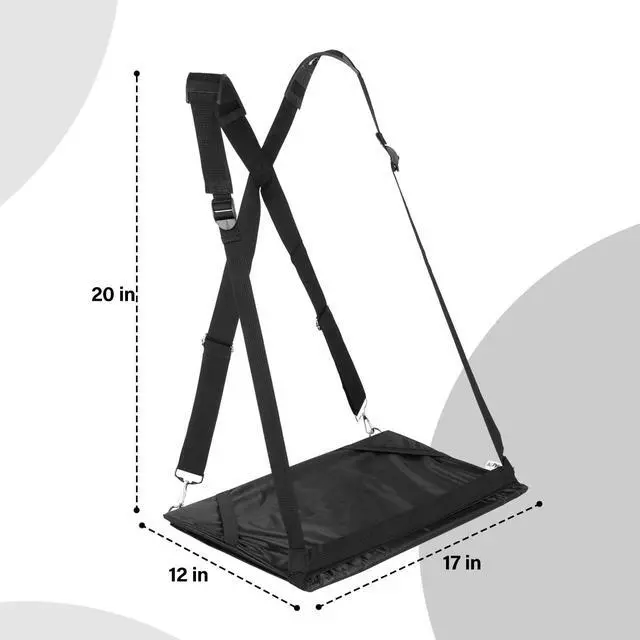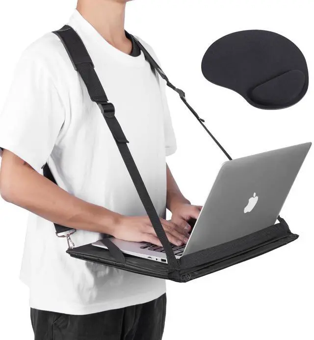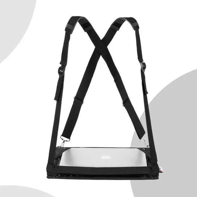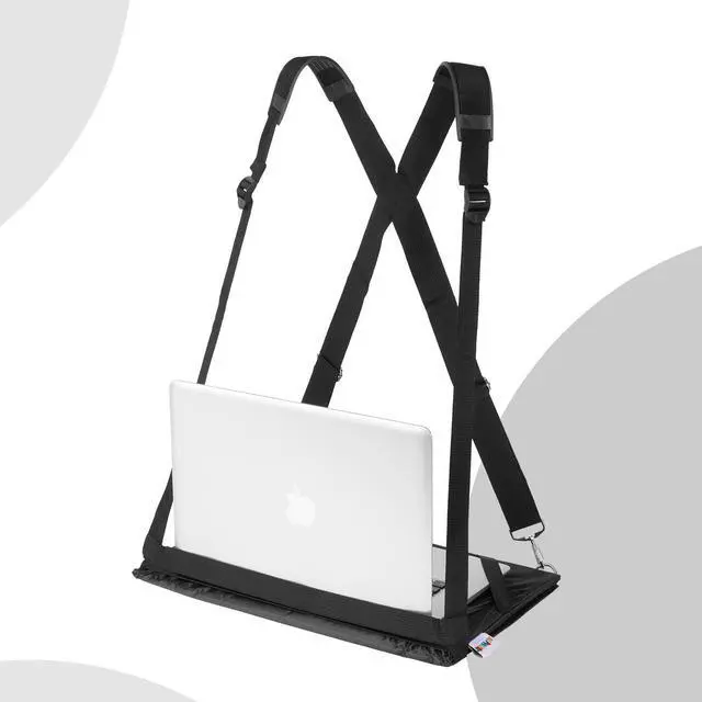 Maximize your productivity while on-the-go with our Hands-Free Wearable Laptop Harness. This innovative laptop harness allows you to securely and comfortably wear your laptop while walking, giving you the freedom to work and move at the same time. ^^ Made from high-quality materials with heavy duty adjustable straps to fit laptops up to 17" and all body types. The ergonomic design provides a comfortable and supportive fit that helps alleviate back pain and strain while walking or standing. ^^ This heavy duty compact design allows you to easily carry in your backpack. ^^ The mobile laptop harness is perfect for remote workers, busy parents, students, and anyone who likes to stay connected while on the move.