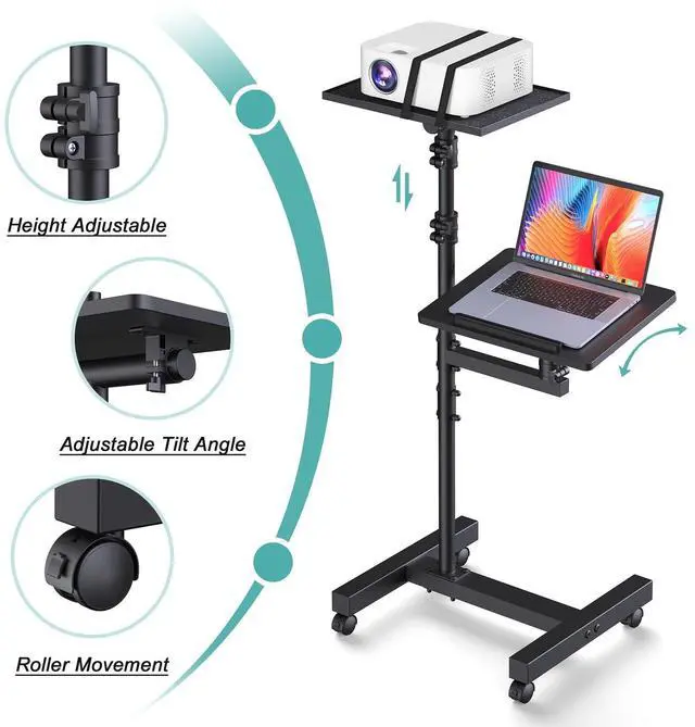 Projector Tripod Adjustable: The height can be adjusted between 45-64 inches and both trays of the projector tripod can be adjusted 180, which is essential for you whether you use it for office or home entertainment ^^
