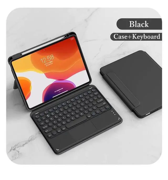 Vertical Magnetic iPad 9th 8th 7th Generation Air 3rd Gen Pro 10.5" Keyboard Case Touchpad Cute Color Keyboard Clear Back Cover Detachable BT Touch Keyboard (Black(Round Key))