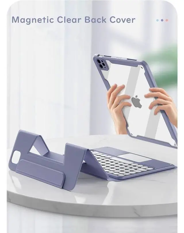 Magnetic separation type back cover When you dont need to use the keyboard, You can use the transparent back cover alone, or use the back cover and leather case alone, which is light and convenient.