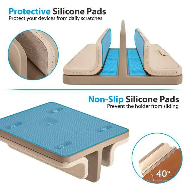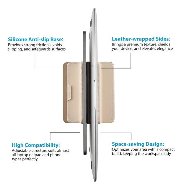 A built-in hex wrench makes sizing quick and easy ^^ Secure & Stable ProtectionDesigned for safety, this vertical laptop holder features a weighted base and non-slip silicone pads to prevent tipping and sliding. Embedded silicone pads protect your devices from scratches, making it a reliable laptop station stand. ^^ Sleek & Durable DesignCrafted from high-quality, one-piece plastic, this Macbook desk stand combines strength with style. The top is elegantly wrapped in leather, offering a sophisticated look that enhances any workspace ^^ ONE YEAR WARRANTYWe are dedicated to providing our customers with high quality products and superior service.