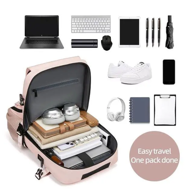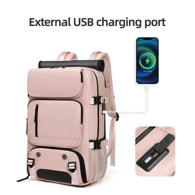 lbs (about 1.25 kg)Style: outdoor, mountaineering, travel, businessCapacity: about 35LIndependent shoe bagMultifunctional use designBoardingEnvironmental friendlyWearablewater proofHidden shoulder strap rollLarge capacity designCan install 16-inch laptopHigh-density waterproof materialHidden USB charging portBreathable honeycomb back cushionComfortable sponge strapFree anti-theft code lock 9.7 inch Tablet PCWaist pad zipper bagCan be inserted into the suitcase