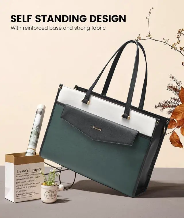 • Professional Chic Laptop Tote Bag: Our laptop bag for women measures 16.5*6.5*12 inches, weighs only 3 pounds, and can stand upright on its own due to its superior support structure. Constructed with premium crosshatch textured PU leather and reinforced with high-density nylon lining, the work tote bags for women is not only tear-resistant but also waterproof and easy to clean, blending durability with sleek sophistication