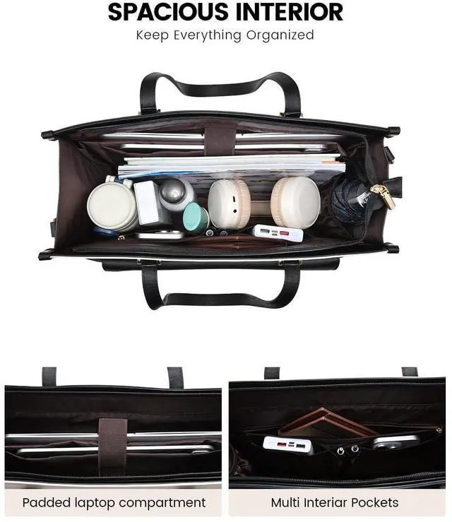 Women: Designed with 12 pockets, including a separate padded compartment that can accommodate a laptop(up to 16") and tablet, and can also store A4 files, binders, pens and other daily office supplies, this women's briefcase laptop bag ensures you are always prepared. The generous capacity accommodates a 40 oz water bottle, making it a perfect companion for work, travel, or any day on the go ^^